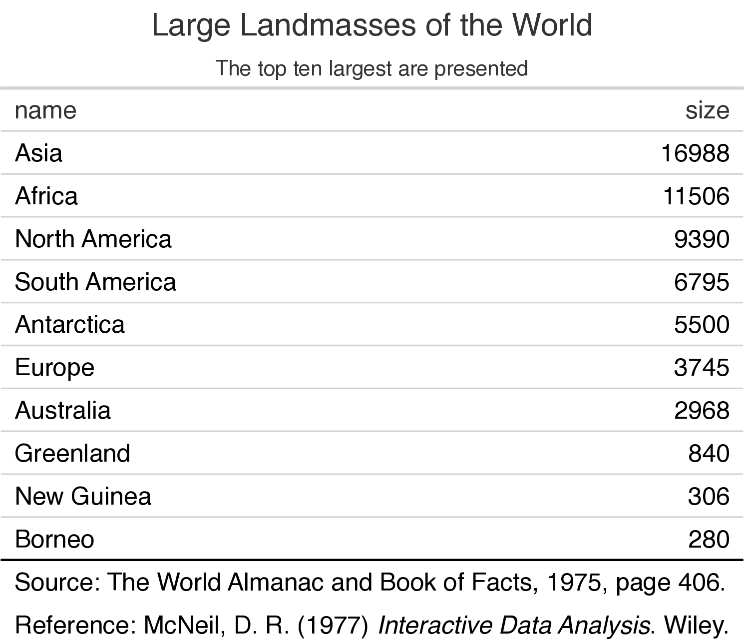 Font sizes and minimal borders make this table stand out.